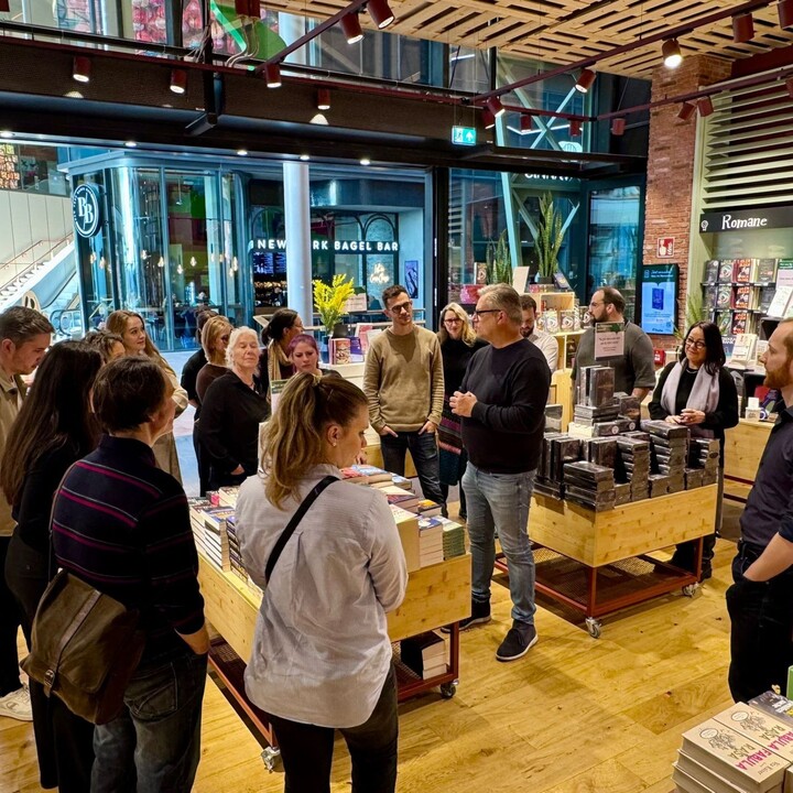 Der zweite Tag begann mit einer persönlichen Führung durch das neue Thalia-Flaggschiff im Westfield Überseequartier – ein Ort, der eindrucksvoll zeigt, wie sich stationärer Buchhandel neu erfindet: mit architektonischer Klarheit, digitalen Services und mutigen Sortimentsideen. Es folgten Einblicke in Thalias strategische Ausrichtung sowie ein Besuch bei der Verlagsgruppe Oetinger, wo Business Intelligence, Datenanalyse und digitale Prozesse greifbar wurden.